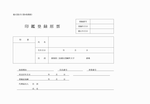 第9条 印鑑の登録、証明に関する申請書、届出書等の様式は、次の各号に定めるところによる。