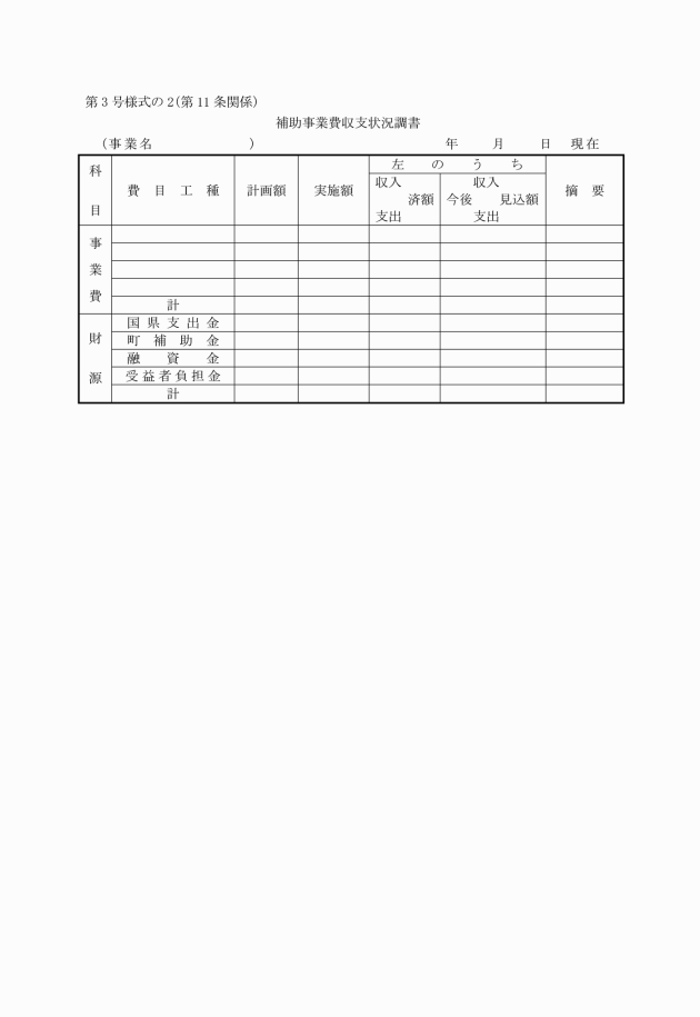 3 第1項の申請書には、事業の内容施行要領収支予算その他必要な事項を記載した書類、図面等を添付しなければならない。