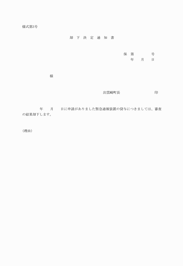 第5条 装置の貸与を受けようとする者(以下「申請者」という。)は、緊急通報体制等整備事業申請書(別記様式第1号。以下「申請書」という。)を町長に提出しなければならない。