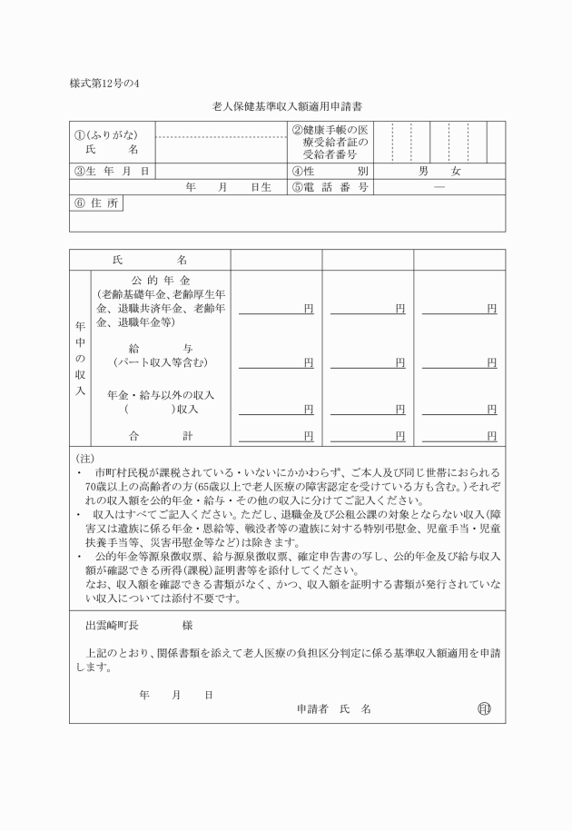 基準収入額適用申請書 | |