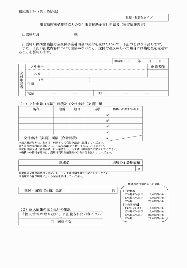 ○出雲崎町機構集積協力金交付事業補助金交付要綱