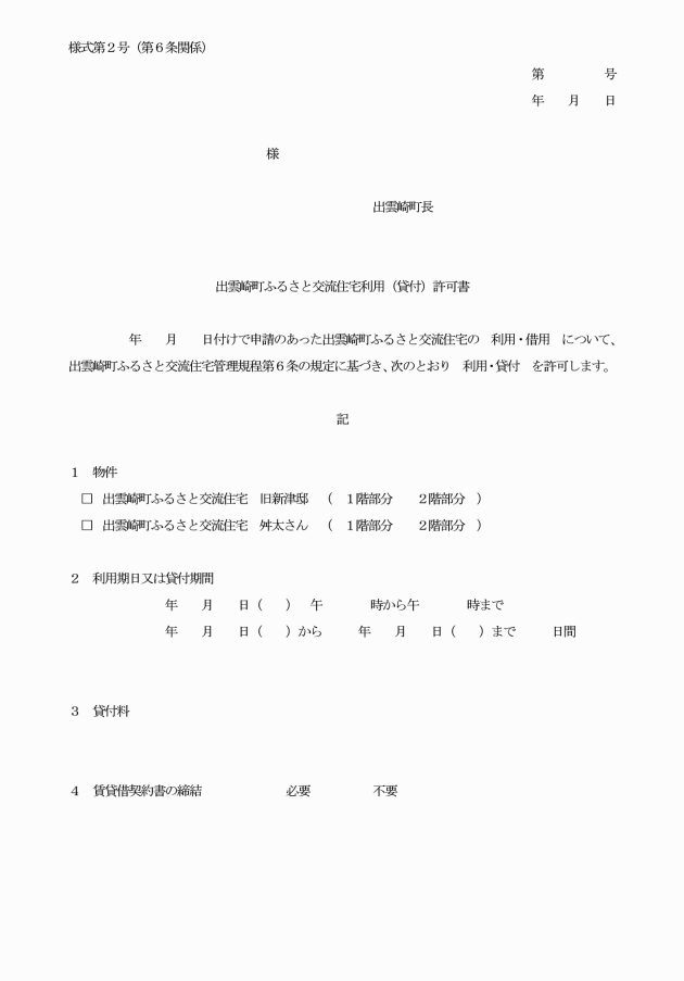 2 借用者は、前項の明渡しをするときは、明渡し日を事前に町長に通知しなければならない。
