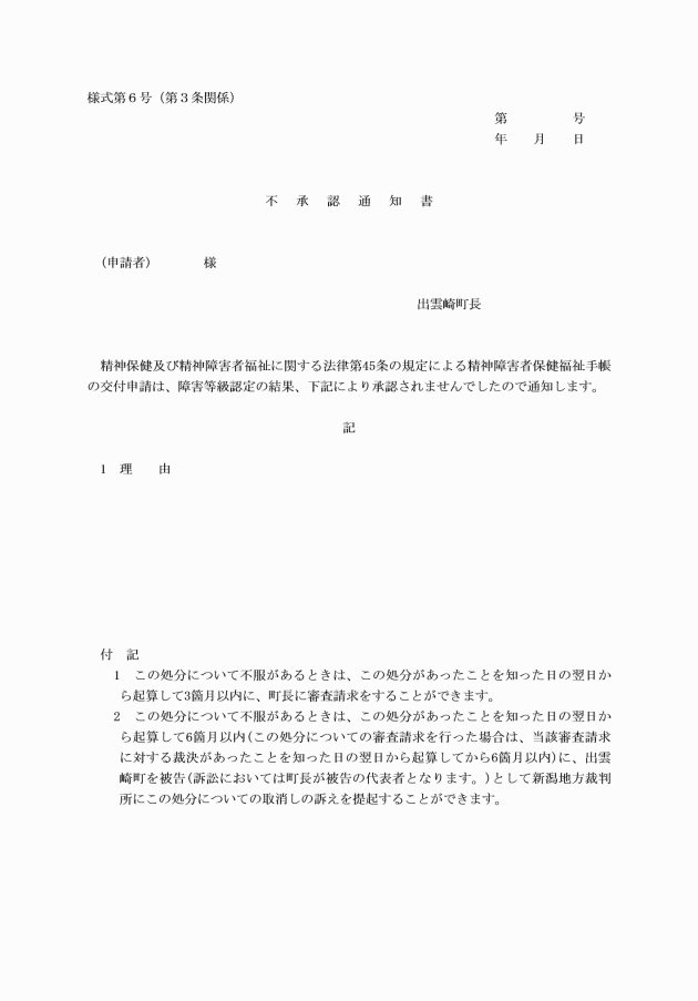 ○出雲崎町精神障害者保健福祉手帳交付実施要領