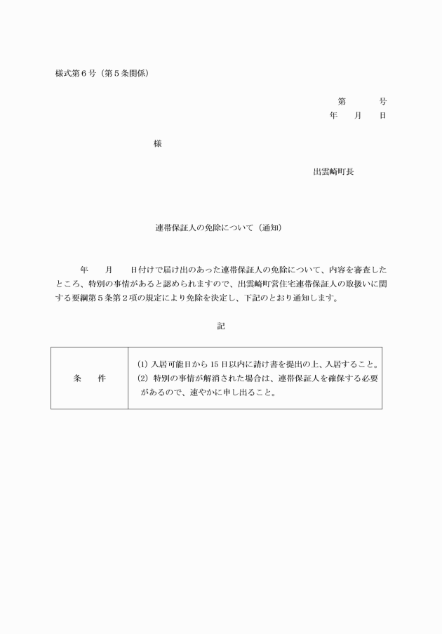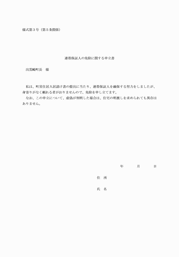 (1) 町営住宅入居者連帯保証人免除申請書(様式第2号)